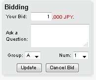 c. 車輛咨詢右側表示有現在投標金額。 需要更改價格是,請輸入新價格,並點擊Update。 需要取消投標時,請點擊Cancel Bid。